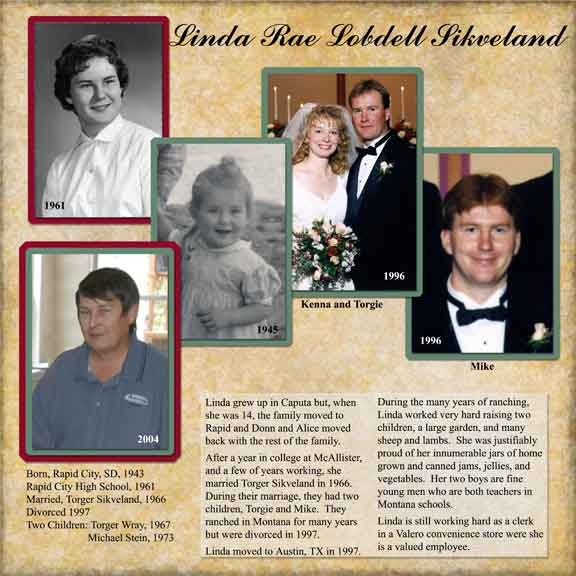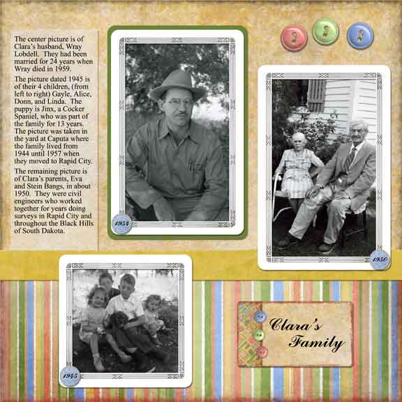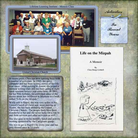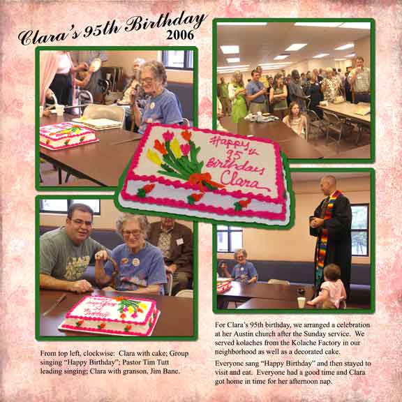 The following pages are from an album I made for my mother's 95th birthday. They're arranged here in the same order in which they appear in the album with left and right pages that face each other. |